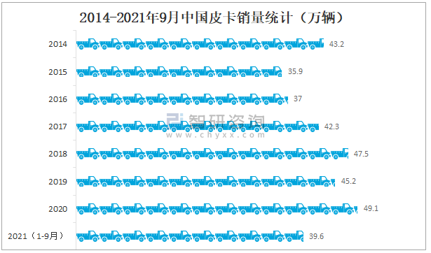 2014-2021年9月中國皮卡銷量統計