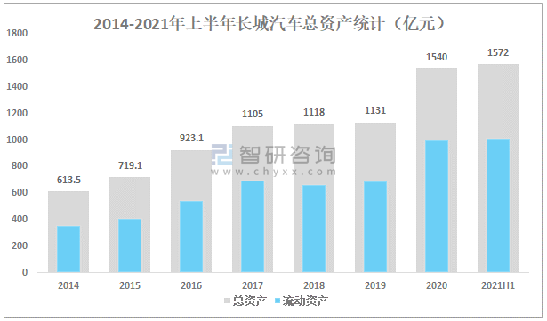 2014-2021年上半年長城汽車總資產統計