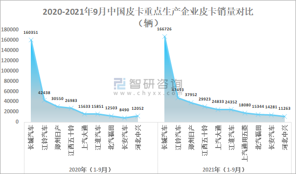 2020-2021年9月中國皮卡重點生產企業皮卡銷量對比(輛)