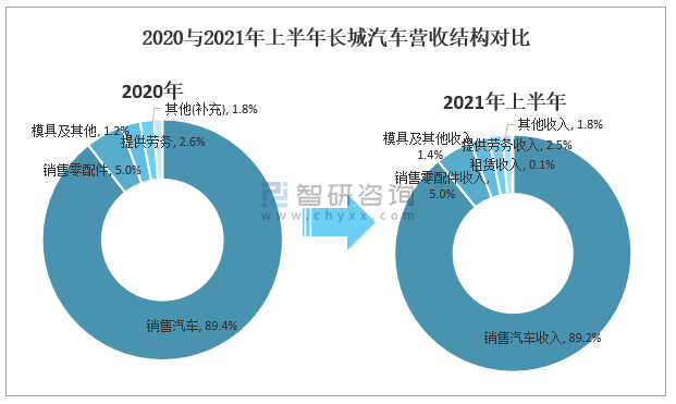 2020與2021年上半年長城汽車營收結構對比