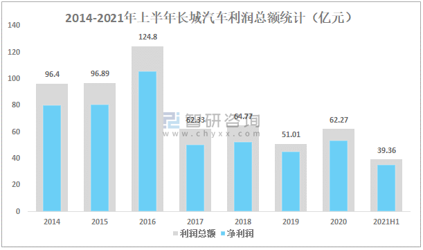 2014-2021年上半年長城汽車利潤總額統計