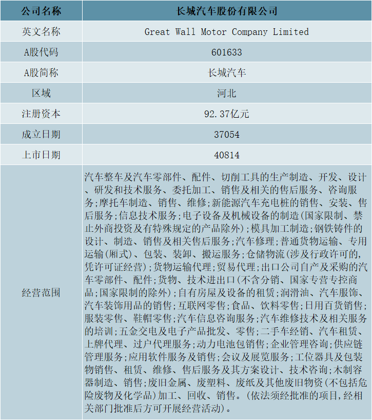 二、龍頭企業分析:長城汽車