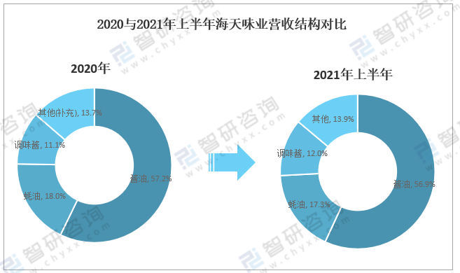 2020與2021年上半年海天味業營收結構對比