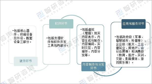 虛擬(增強)現(xiàn)實是基于新一代信息技術的戰(zhàn)略性新興產業(yè),具有應用空間大、產業(yè)潛力大、技術跨度大的特點,虛擬(增強)現(xiàn)實產業(yè)鏈主要包含硬件、軟件、內容制作與分發(fā)、應用和服務等環(huán)節(jié)。