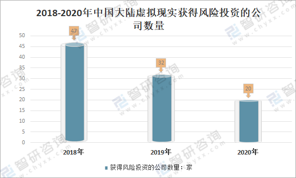 2018-2020年中國大陸虛擬現(xiàn)實獲得風險投資的公司數(shù)量
