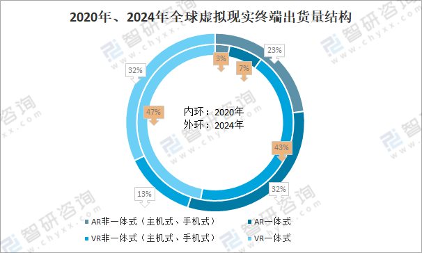 2020年、2024年全球虛擬增現(xiàn)實終端出貨量結構