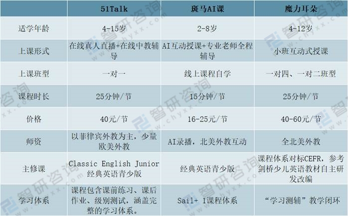 中國K12在線英語教育行業代表性平臺主要有51Talk、斑馬AI課、魔力耳朵等,51Talk是在線外教一對一平臺的典型代表,斑馬AI課是新興的英語A1課在線平臺的典型代表,而魔力耳朵是在線英語班課互動平臺的典型代表。