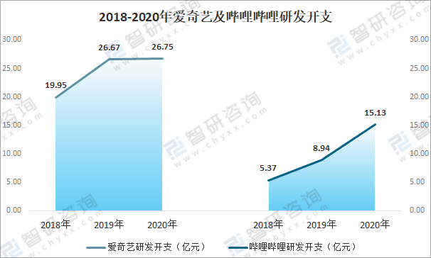2018-2020年愛奇藝及嗶哩嗶哩研發開支