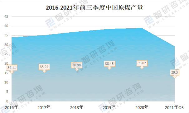 中國是世界最大產煤國。煤炭在中國經濟社會發展中占有極重要的地位。2016年以來,中國原煤產量呈增長趨勢,2020年中國原煤產量39.02億噸,同比增長1.5%;2021年上半年,全國通過在建煤礦投產、在產煤礦產能核增、煤礦智能化改造擴產、煤礦產能衰減接續項目達產等多種方式,合計新增優質先進產能1.4億噸/年以上,其中在建煤礦投產9000萬噸/年左右,在產煤礦核增產能約3000萬噸/年。2021年前三季度,中國原煤產量29.3億噸,同比增長6.4%。
