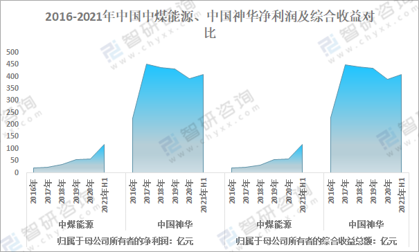 2016-2021年中國中煤能源、中國神華凈利潤及綜合收益對比