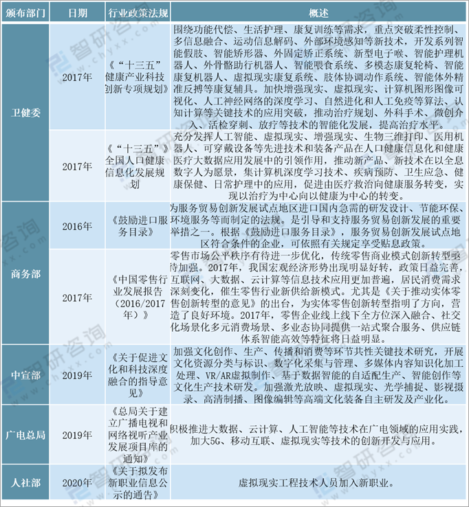 一、我國各部委虛擬現實領域相關政策