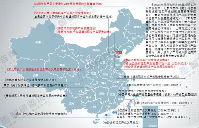 自2018年底工信部出臺虛擬現實產業發展指導意見后,各地隨之出臺適配本地情況的扶持政策。例如,北京市發布《關于促進中關村虛擬現實產業創新發展的若干措施》,青島市陸續出臺《嶗山區促進虛擬現實產業發展實施細則》、《青島市虛擬現實產業攻堅行動指南》等產業政策,成都市發布《成都市虛擬現實產業發展推進工作方案》,沈陽市2020年發布《沈陽市和平區關于提供VR云服務資源的補貼管理辦法》對虛擬現實相關企業使用VR云服務資源提供補貼支持。南昌市從2018年至今連續三年舉辦世界VR產業大會,深入打造首個城市級VR產業基地,明確提出要打造世界VR之都的發展目標,并于成立了江西省虛擬現實產業鏈專家咨詢委員會等智庫組織。