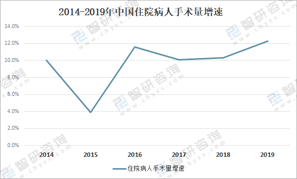 2014-2019年中國住院病人手術(shù)量增速
