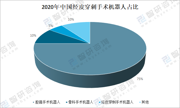 中國經(jīng)皮穿刺手術(shù)機器人占比較少,2020年中國經(jīng)皮穿刺手術(shù)機器人占比僅5%。
