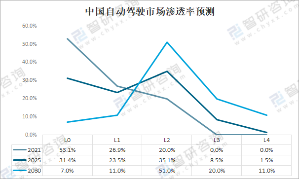 2021年第一季度L2級實際新車搭載率為13.1%,預計2021年年底L2整體新車滲透率將達到20%,不少車企已經(jīng)在2021年宣布將L3及以上的新車上市計劃延后,結合市場激勵措施,預測大量L3車輛會在2025年左右大規(guī)模上市。