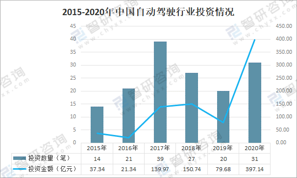 2015-2020年中國自動駕駛行業(yè)投資情況