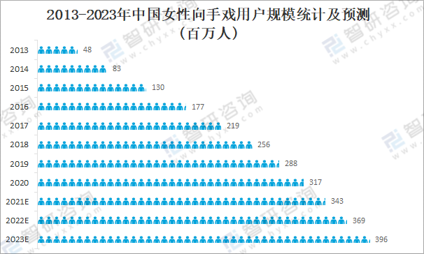 2013-2023年中國女性向手戲市場規模統計及預測