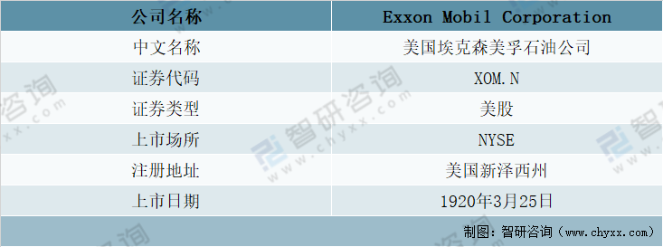美國埃克森美孚石油公司于1882年在新澤西州成立。埃克森美孚的分公司和附屬公司在美國和世界上大多數其他國家經營及銷售產品。他們的主要業務是能源,包括原油和天然氣的勘探和生產,石油產品的制造以及原油、天然氣和石油產品的運輸和銷售。埃克森美孚是大宗商品石化產品的主要制造商和銷售商,包括烯烴、芳烴、聚乙烯和聚丙烯塑料以及各種各樣的特種產品。埃克森美孚的子公司開展了廣泛的研究項目來支持這些業務。