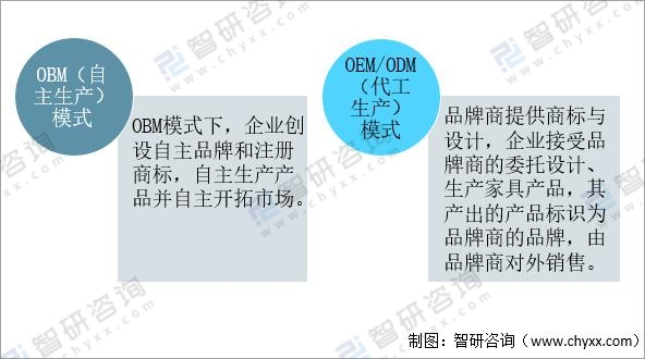 我國軟體家具行業品牌商生產模式大多選擇OBM(自主生產)和OEM/ODM(代工生產)兩種模式。