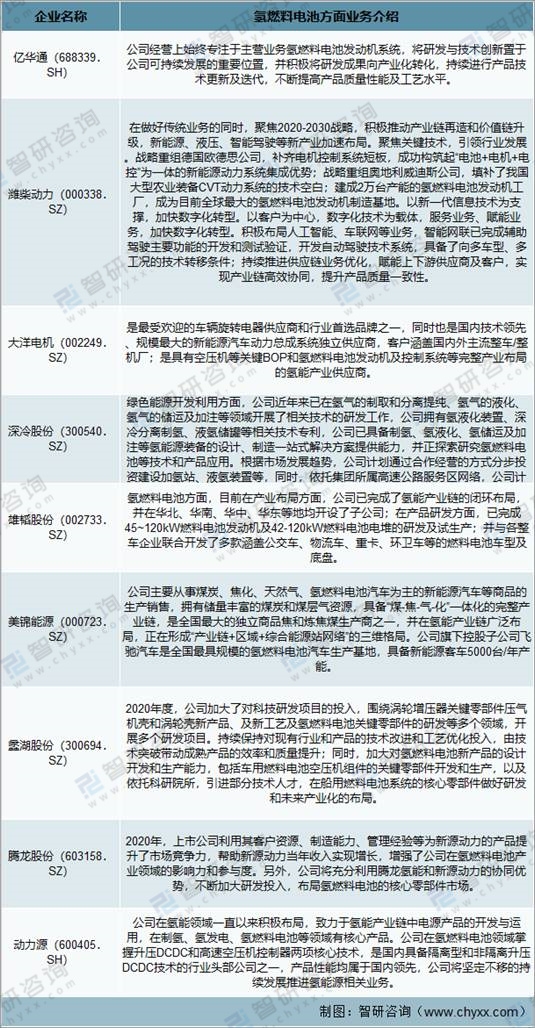 氫燃料電池制造上市公司企業氫燃料電池業務介紹