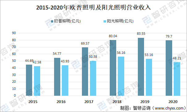 2015-2020年歐普照明及陽光照明營業收入