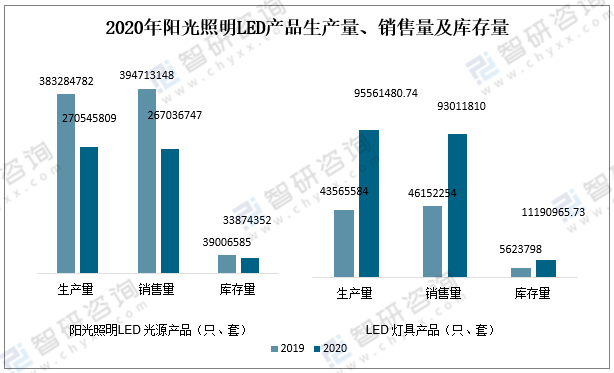2020年陽光照明LED產品生產量、銷售量及庫存量