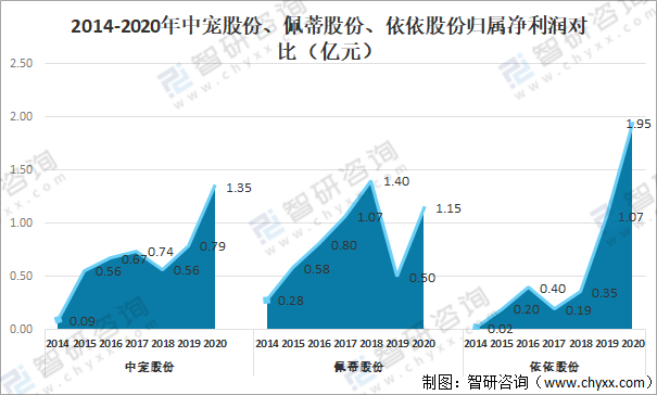 2014-2020年中寵股份、佩蒂股份、依依股份歸屬凈利潤(rùn)對(duì)比(億元)