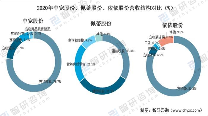 2020年中寵股份、佩蒂股份、依依股份營(yíng)收結(jié)構(gòu)對(duì)比(%)