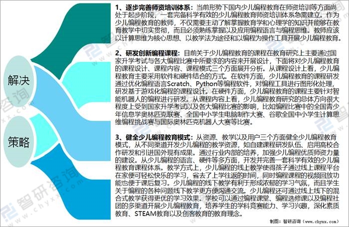 面對中國少兒編程教育行業發展中存在的問題,解決策略主要有:逐步完善師資培訓體系;研發創新編程課程;健全少兒編程教育模式等。