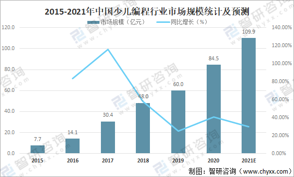 2015-2021年中國少兒編程行業市場規模統計及預測
