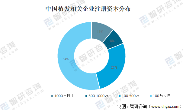 中國植發相關企業注冊資本分布