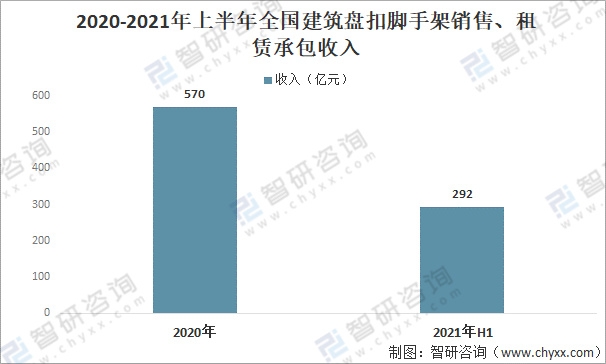 2020-2021年上半年全國建筑盤扣腳手架銷售、租賃承包收入