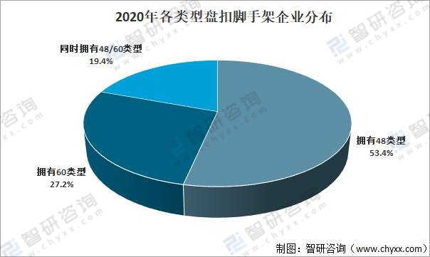 從盤扣腳手架企業產品類型分布來看,擁有48類型盤扣腳手架企業占比53.4%,擁有60類型盤扣腳手架企業占比27.2%,共有19.4%的企業同時擁有48類/60類型盤扣腳手架。