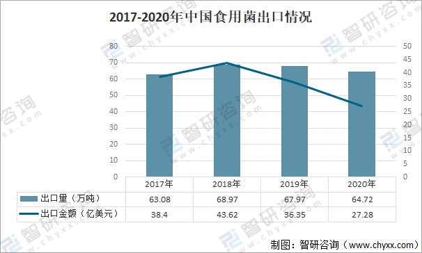 2017-2020年中國食用菌出口情況