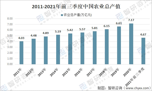 2011-2021年前三季度中國農業總產值