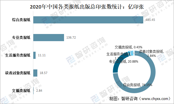 2020年中國各類報紙出版總印數統計:億份