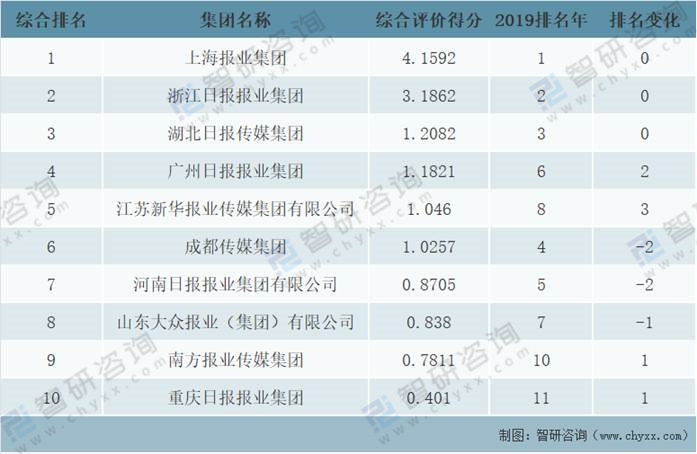 總體經濟規模綜合評價前10位的報刊出版集團