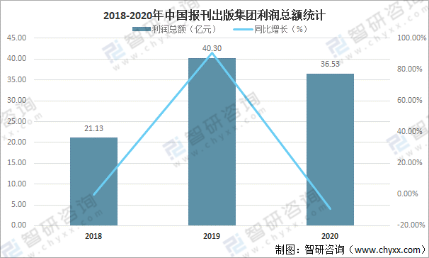 隨著主營業務收入的減少,利潤總額也隨之減少,2020年中國45家報刊出版集團利潤總額為36.53億元,較2019年減少了3.77億元,同比減少9.35%。