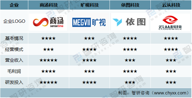 商湯科技、曠視科技、依圖科技和云從科技AI視覺小四龍基本情況對比分析