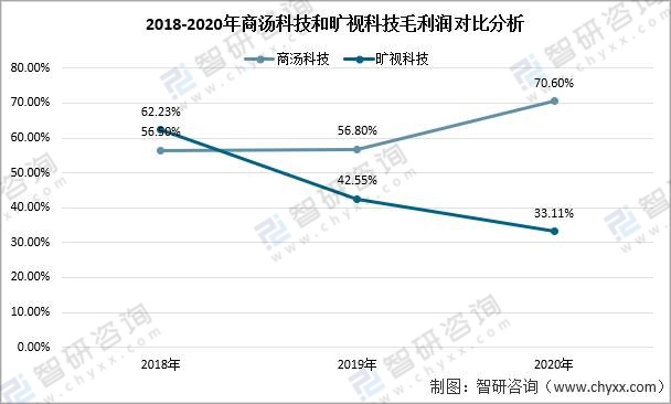 2018-2020年商湯科技和曠視科技毛利潤對比分析