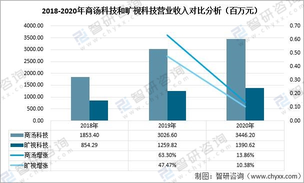 2018-2020年商湯科技和曠視科技營業收入對比分析(百萬元)
