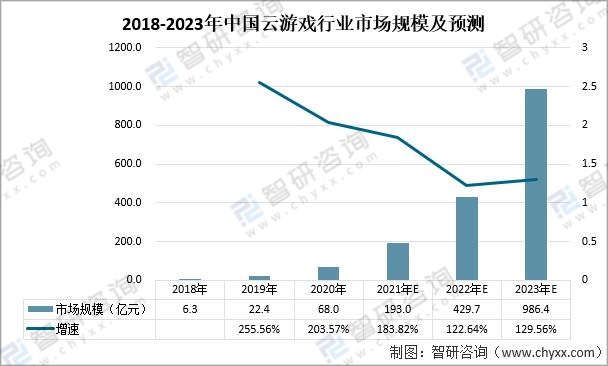 2018-2023年中國云游戲行業市場規模及預測