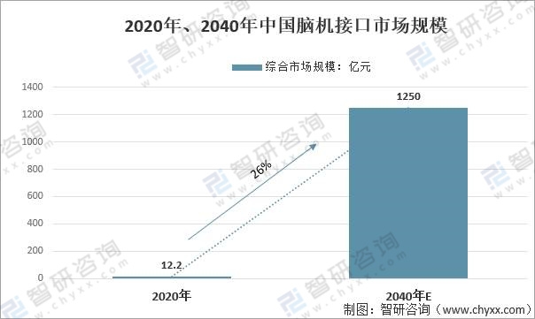 2020年、2040年中國腦機接口市場規(guī)模
