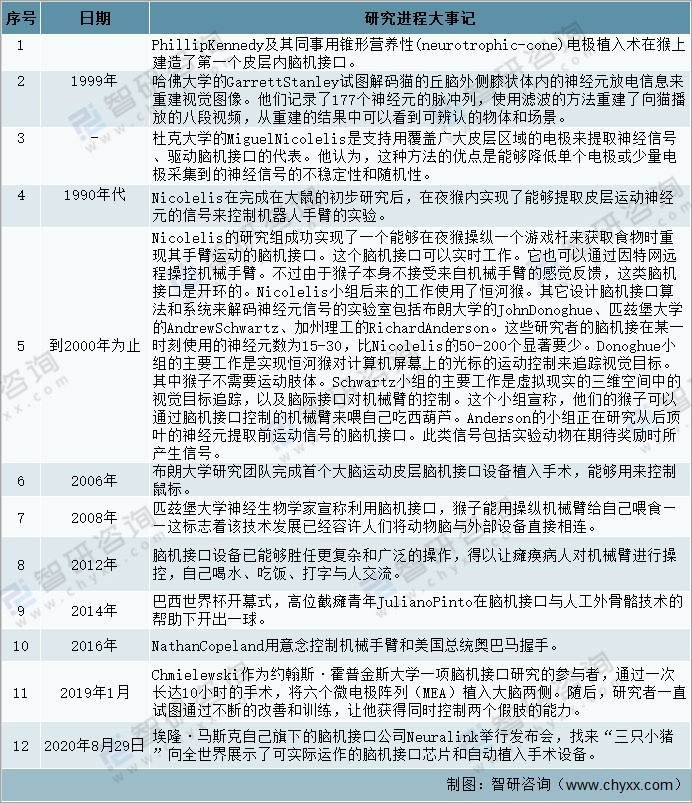 腦機接口研究進程大事記