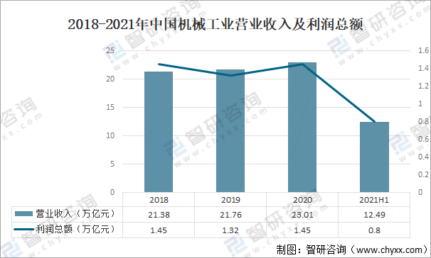 隨著中國基礎(chǔ)設(shè)施建設(shè)的快速發(fā)展,工程機械的需求不斷增加,中國工程機械行業(yè)得到快速發(fā)展。2021上半年中國機械工業(yè)營業(yè)收入為12.49萬億元,利潤總額為0.8萬億元。