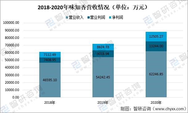 2018-2020年味知香營收情況(單位:萬元)