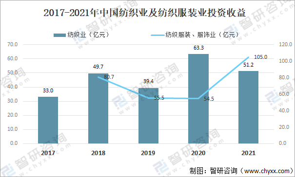2017-2021年中國紡織業及紡織服裝業投資收益