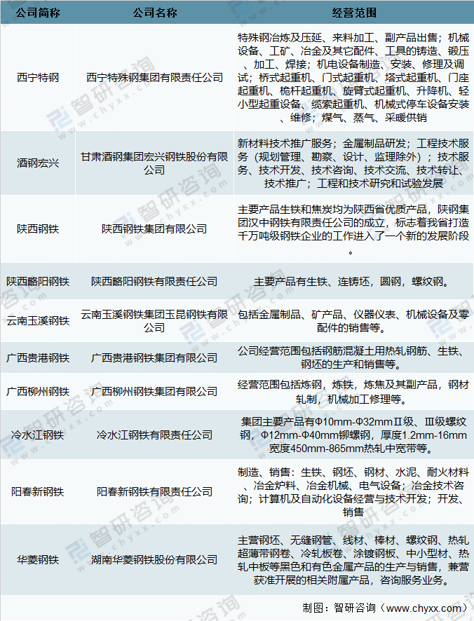 中國主要粗鋼企業經營范圍