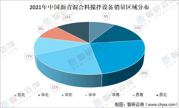 2021年中國瀝青混合料攪拌設備銷量區域分布