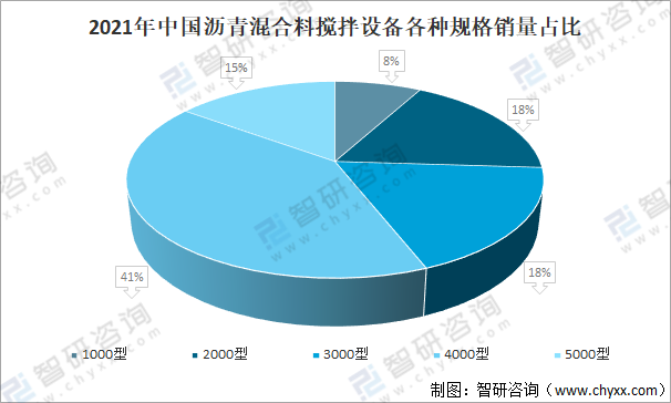 2021年中國瀝青混合料攪拌設備各種規格銷量占比